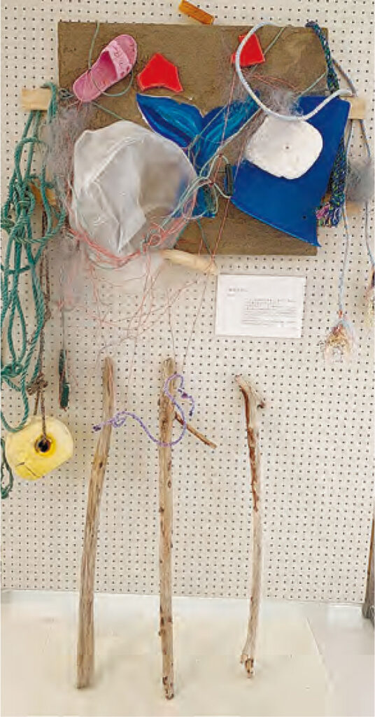 牡鹿半島には捕鯨の歴史がある。もしかすると、これはくじらの一部なのか。同じ哺乳類として、人間に何かを問いかけているくじらからのメッセージなのか。誰かの物だった人工物と共に流れ着いた自然の流木を対比させてみました。