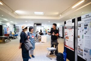 ポスター会場には多くの発表があり、にぎわっていた。こどもみらい通信社を運営するこどもみらい研究所は「もっともっと子どもたちの声が聞こえる社会へ」と題したポスター発表を行い、2025年3月11日に発刊した「石巻日日こども新聞第46号」を来場者に配布した。